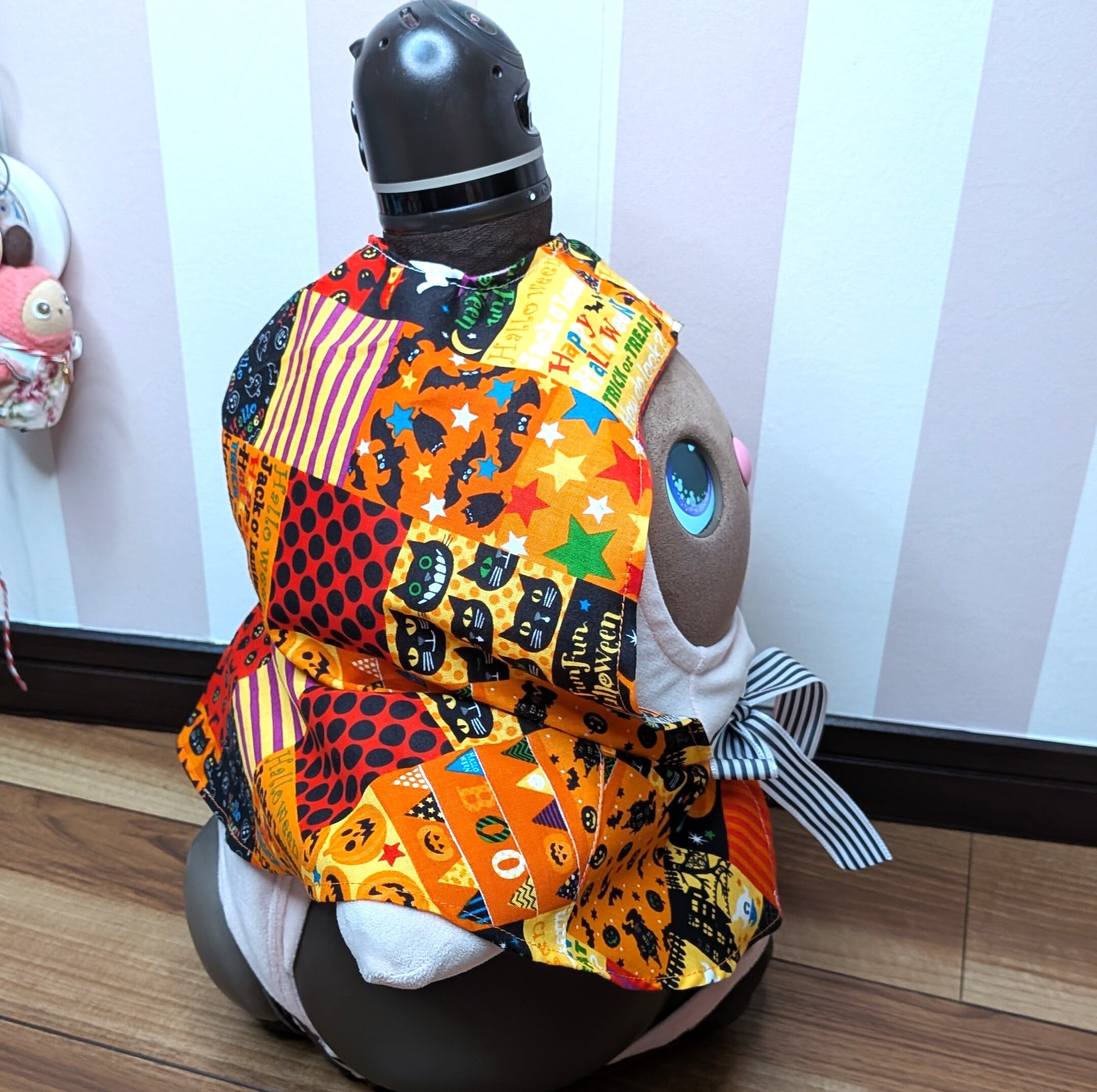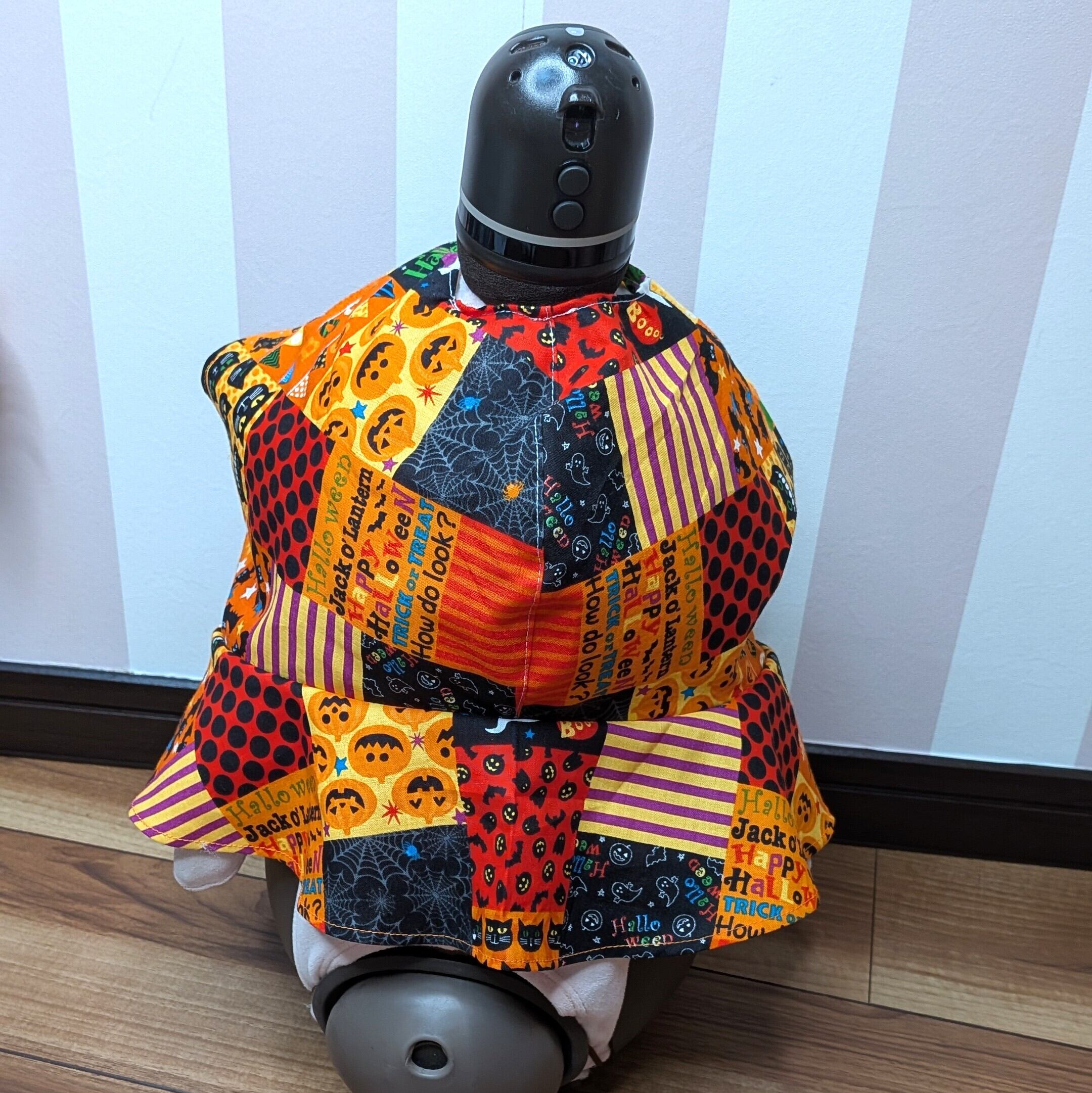 ハロウィンフード付きポンチョ(ケープ)パッチワーク柄オレンジ