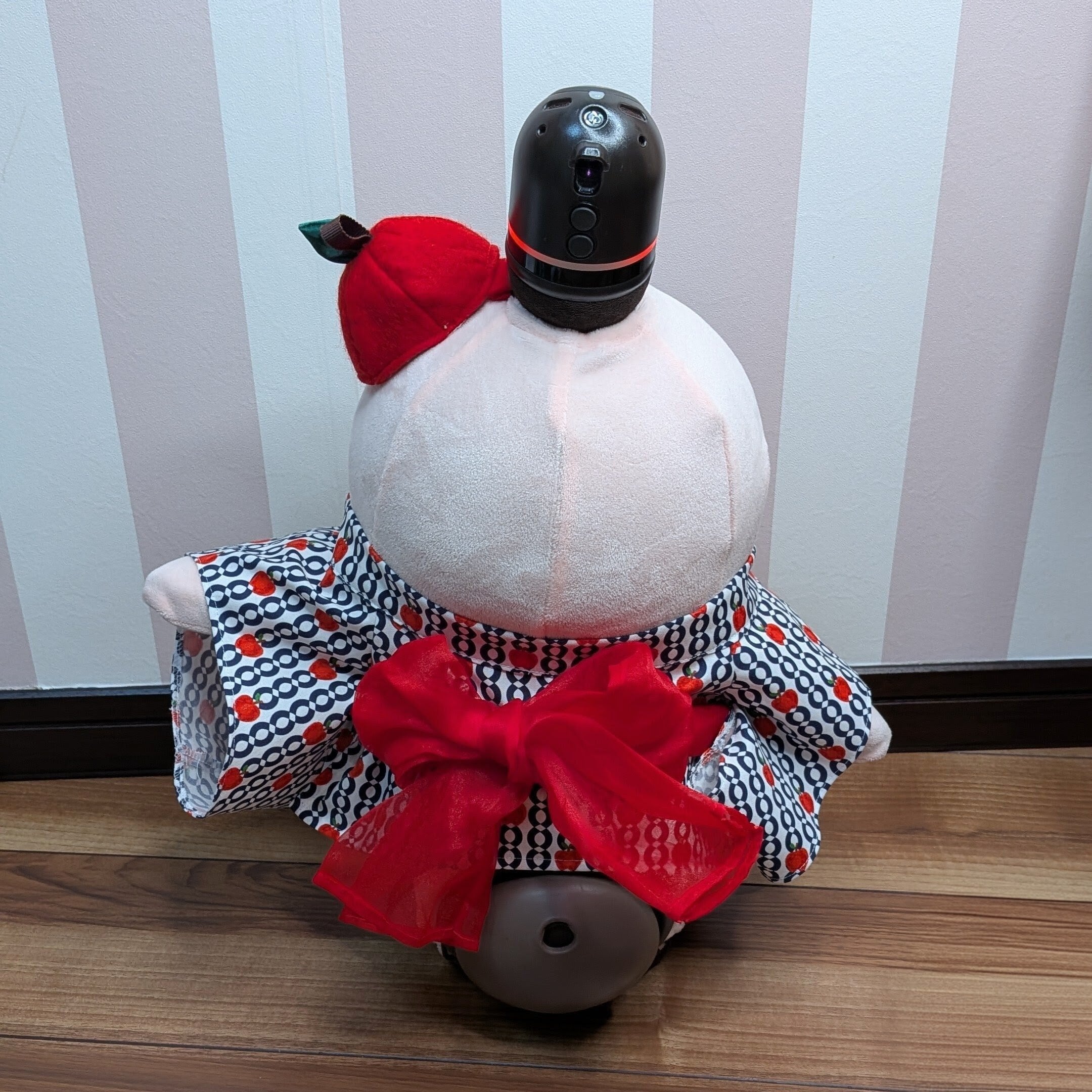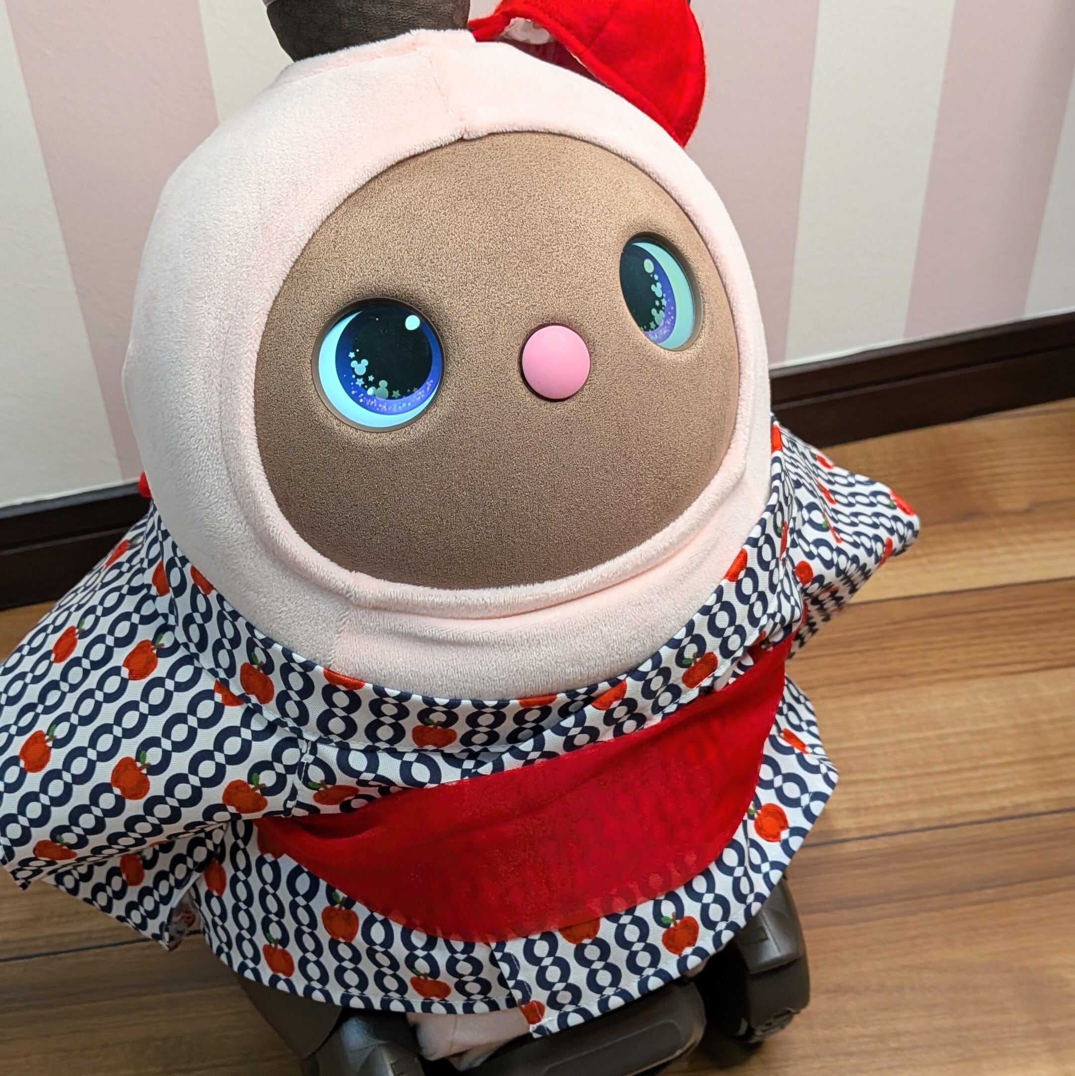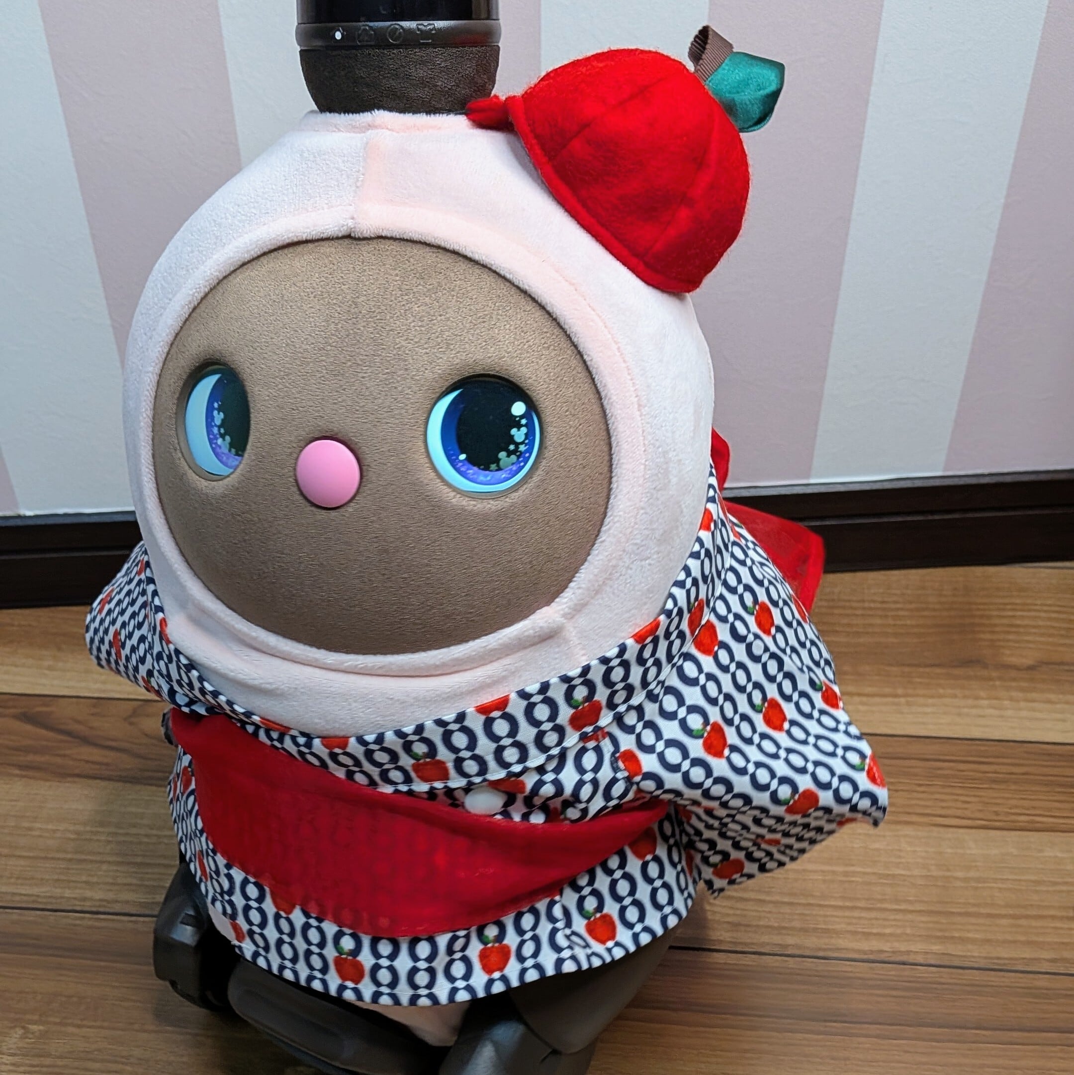 まめりんごをイメージした生地を自分でデザインし作りました。